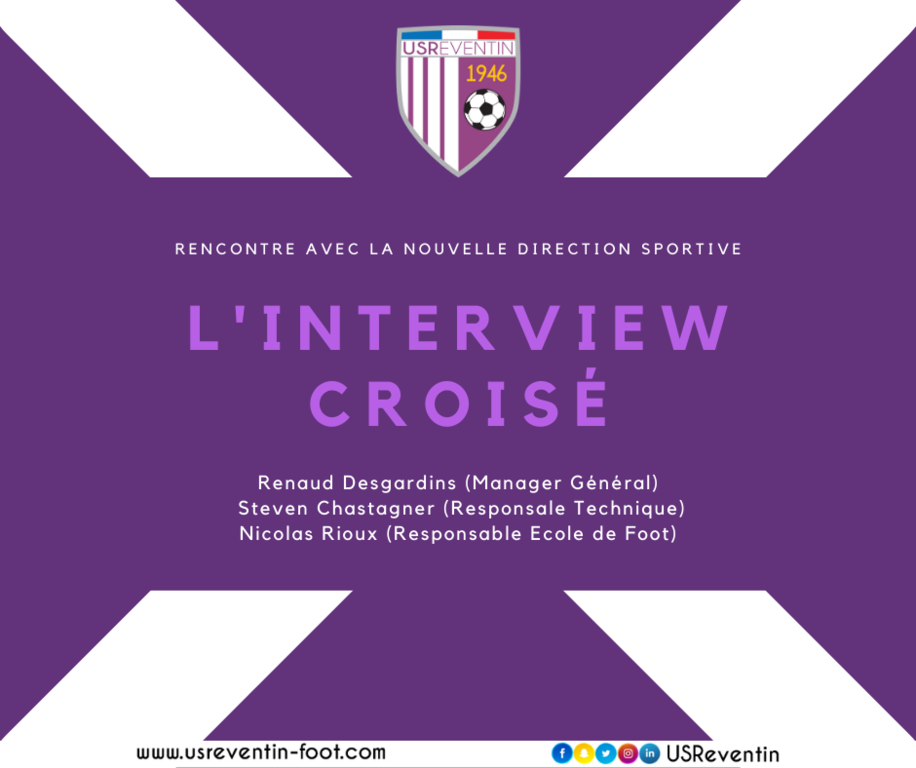 L’US Reventin vient d’annoncer le renforcement de sa direction sportive avec le duo Renaud Desgardins (Manager Général) / Steven Chastagner (Responsable Technique), et l’appui de Nicolas Rioux pour l’Ecole de Foot. Pour mieux comprendre que représente concrètement cette évolution majeure pour le club, découvrez ces trois protagonistes dans l’interview croisé.